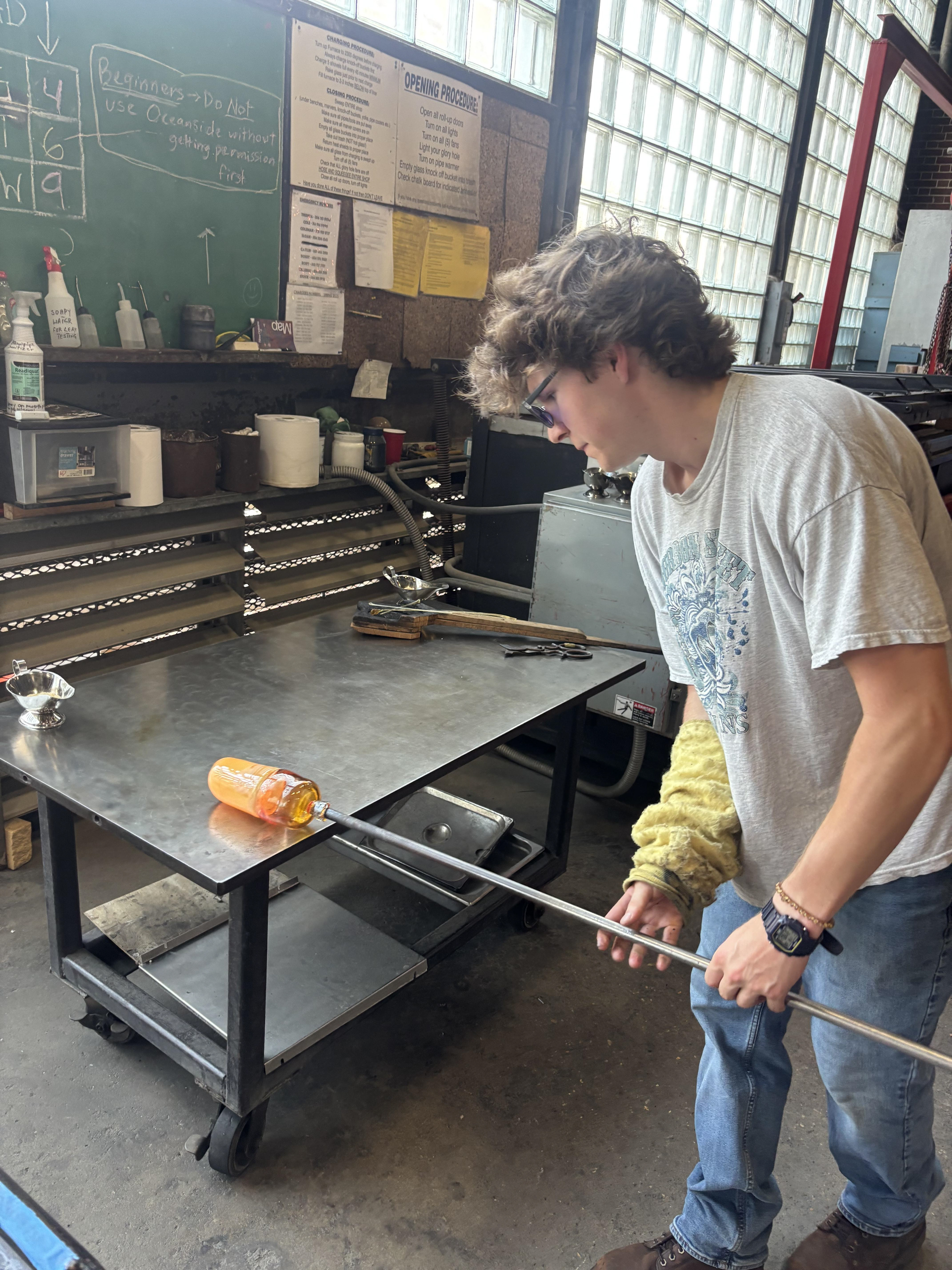 Steel, blown glass